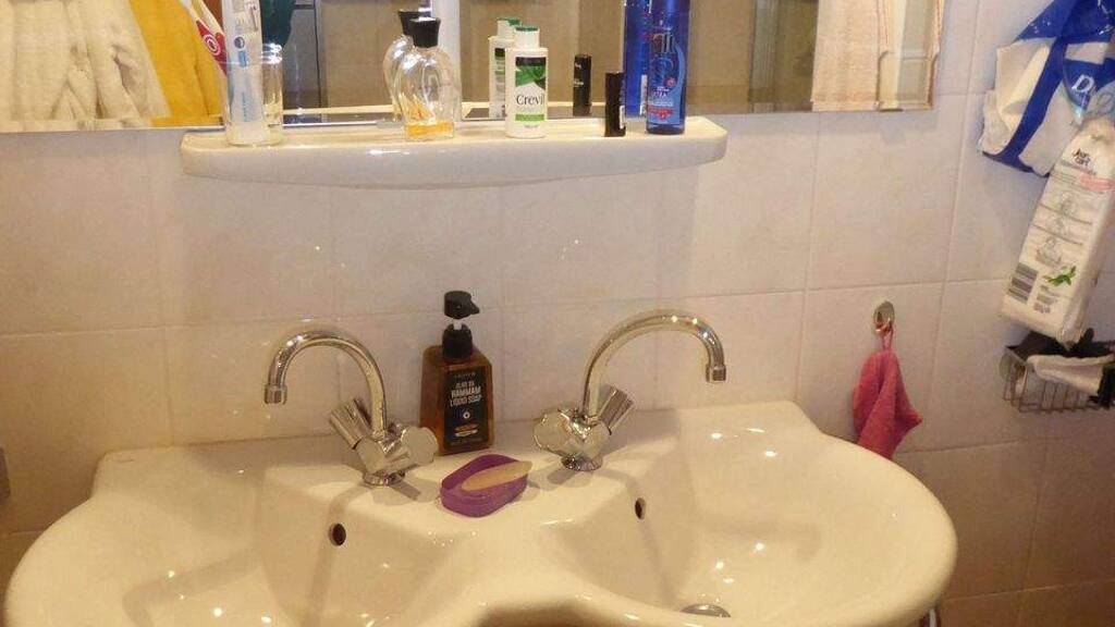 Das Bad ist mit Dusche inklusive Kabine, Waschbecken und WC ausgestattet. In der gesamten Wohnung wurde ein Fliesenboden verlegt.