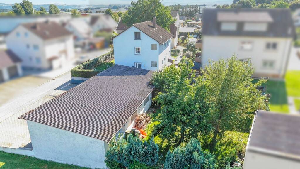 Willkommen in Ihrem neuen Zuhause! Dieses im Jahr 1963 erbaute Zweifamilienhaus bietet auf rund 211 Quadratmetern Wohnfläche viel Raum für individuelle Lebenskonzepte. Mit einer Gesamtgrundstücksgröße von 841 Quadratmetern, verteilt auf zwei Flurstücke, eröffnet sich hier eine seltene Gelegenheit für Familien, Mehrgenerationenwohnen oder kreative Bauherren, die das vorhandene Potenzial für eigene Ideen nutzen möchten. Dank der Vollunterkellerung mit zusätzlichen rund 80 Quadratmetern Nutzfläche sowie drei Garagen mit Starkstrom-, Druckluft- und Wasseranschluss sind nicht nur die Wohn-, sondern auch die Nutzungsmöglichkeiten außergewöhnlich vielseitig. Besonders praktisch: Eine der Garagen verfügt über ein elektrisches Tor und bietet eine Durchfahrt zum hinteren Grundstück. Entspannt verweilen kann man in den Sommermonaten auf der Terrasse mit dem Blick in den eigenen Garten.