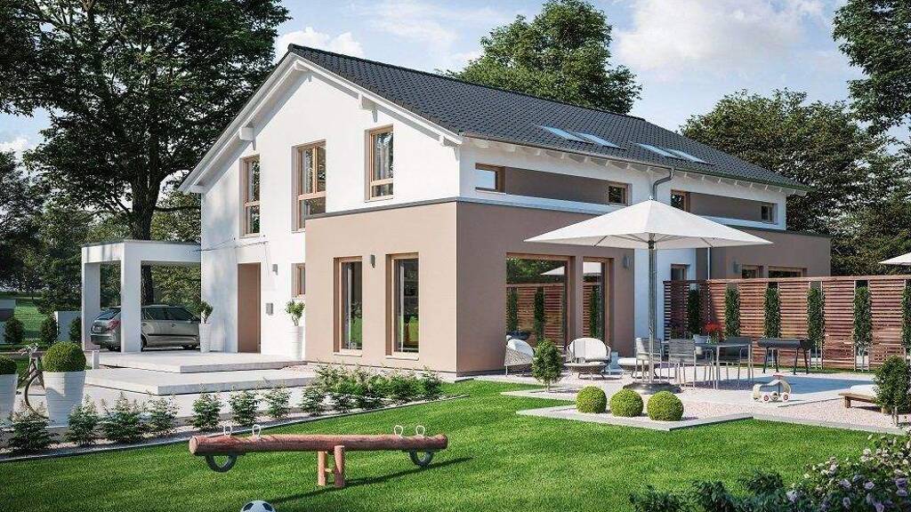 Das LivingHaus begeistert auf 210 Quadratmetern mit einer charmanten Mischung aus Flexibilität und Individualität. Auf zwei Etagen bieten sieben Zimmer eine Fülle an Möglichkeiten zur kreativen Entfaltung. Das klassische Satteldach mit einer Neigung von 25 Grad verleiht dem Haus eine elegante Note, während Erker und Giebel nicht nur stilvoll aussehen, sondern auch Raum für Ideen schaffen. Der durchdachte Grundriss umfasst einen einladenden Wohn- und Essbereich, eine moderne Küche, ein Gäste- und Hauptbad sowie drei Schlafzimmer - darunter zwei Kinderzimmer - die das entspannte Familienleben perfekt ergänzen. Mit LivingHaus gestaltest du dein Zuhause gemäß deinen Wünschen: Eine maßgeschneiderte Traumküche wartet darauf, deine kulinarischen Meisterwerke mit modernster Technik zu unterstützen. Das Bau-Cockpit hält alle wichtigen Informationen digital bereit, um den Bauprozess stressfrei zu gestalten. Dank I-KON - Intelligentes Bauen wird das Haus zum Effizienzhaus 55 und benötigt nur 55 % der Energie eines Standardhauses. Innovativer Dämmstoff und clevere Heiztechnik sind sowohl umwelt- als auch geldbeutelschonend. Finanzielle Unterstützung erfolgt durch das Zuhause-Darlehen bis zu 250.000 Euro mit ausgezeichneten Konditionen, ergänzt durch staatliche Förderungen. Im Zuhause-Paket findest du hochwertige Materialien wie elegante Türen und edle Sanitäranlagen. Für Heimwerker ist das dreitägige Ausbau-Coaching ideal: Experten begleiten dich auf dem Weg zum meisterlichen Innenausbau.