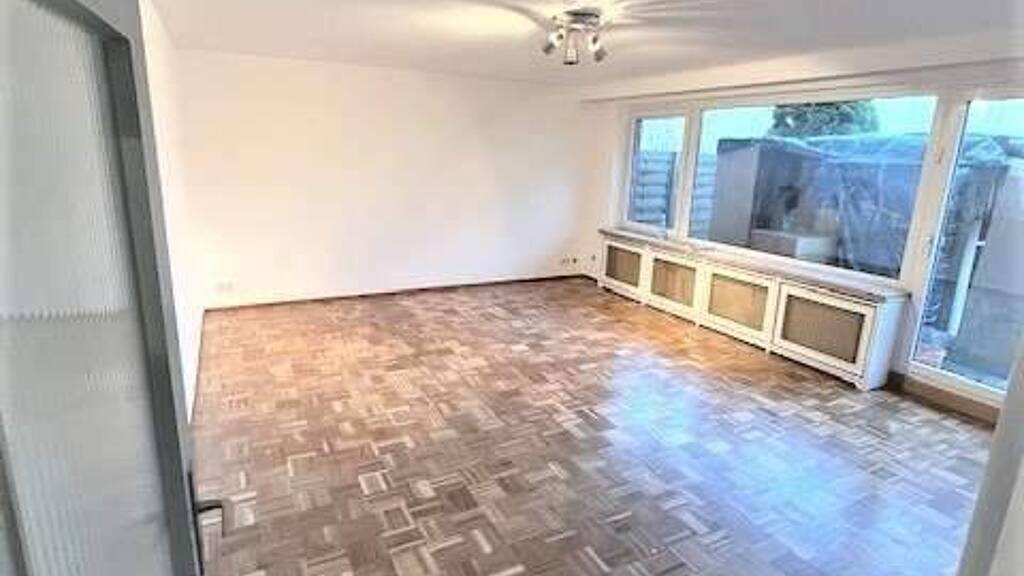 +Wohn-/Schlafzimmer: Ca. 26 m², lange Fensterfront, Zugang zur Terrasse, Eichen-Echtholzparkett (neu geschliffen und versiegelt) +Küche: Moderne Einbauküche mit weißen Einbaumöbeln und Markengeräten +Badezimmer: Deckenhohe graue Fliesen, begehbare Dusche, Villeroy und Boch Armaturen und Keramik +Gäste-WC: Hochwertige Ausstattung, Villeroy und Boch Flur: Abstellraum +Terrasse: Neu angelegte Kiesterrasse +Keller: Großer Kellerraum +Pkw-Stellplatz: Vorhanden