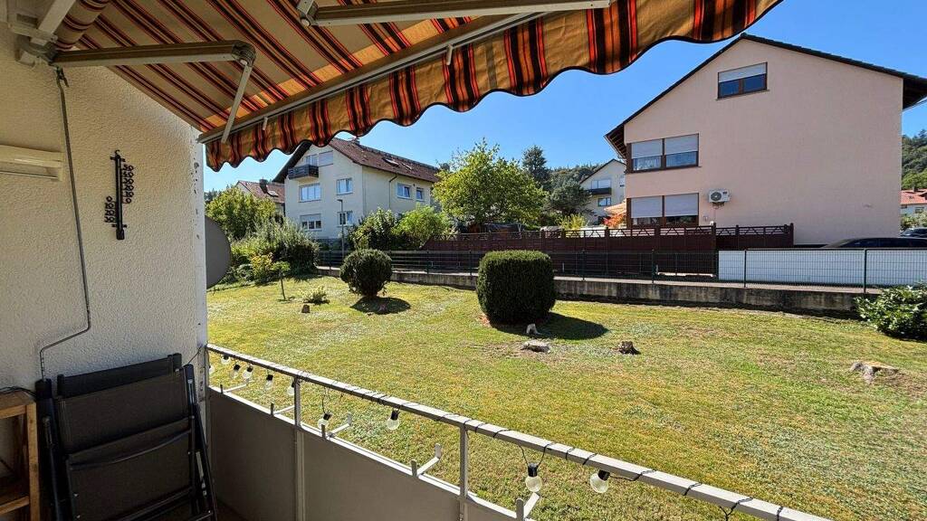 ⦁ Sonniger Balkon mit Blick ins Grüne