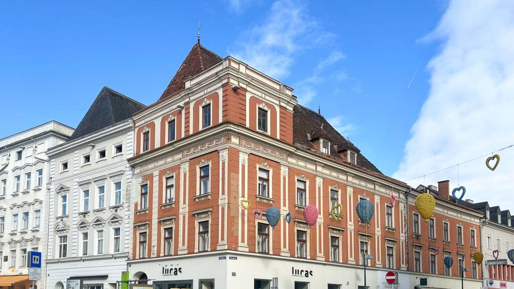 Dieses charmante Zinshaus befindet sich in absoluter Zentrumslage direkt am Stadtplatz von Wels. Das Gebäude wurde ursprünglich um 1500 errichtet und erfuhr gegen Ende des 19. Jahrhunderts, etwa 1898, einen umfassenden Umbau. Vor rund 15 Jahren wurden wesentliche technische Sanierungen vorgenommen, darunter die Erneuerung der Stromleitungen, der Heizungsanlage sowie der Bodenbeläge. Beheizt wird das Haus heute zeitgemäß über Fernwärme. Ein Dachausbau wäre möglich, dies müsste mit der Gemeinde ins Detail besprochen werden.