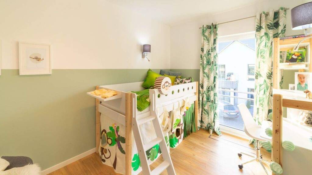 Ein echter Blickfang des Design 12 ist die Fassade, die durch ihre farbige Gestaltung zum echten Hingucker wird. Doch auch die Räume unter dem Satteldach haben auf mehr als 160 m² Wohnfläche vieles zu bieten: Von der Diele haben Sie Zugang in die Küche mit angeschlossenem Wohn-Ess-Bereich. Im Erdgeschoss führen fünf Türen nach draußen und sorgen zugleich für viel Licht. Ebenfalls auf dieser Etage: WC, Hauswirtschaftsraum sowie ein weiterer Raum, der als Gästezimmer oder Büro genutzt werden kann. Von der Diele führt auch eine Treppe ins Dachgeschoss. Hier steht den Eltern ein großes Reich mit direkt angeschlossenem Ankleidezimmer zur Verfügung, und auch für zwei Kinder ist viel Platz zum Toben, Schlafen, Spielen oder Lernen. Ein echtes Highlight: das knapp 16 m² große Badezimmer.