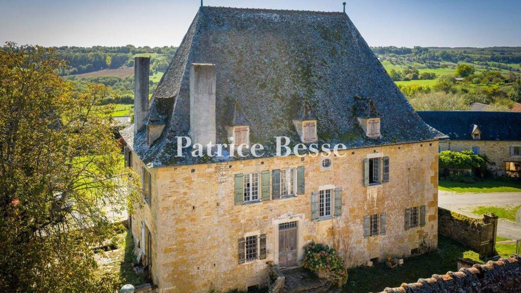 The former farm consists of a main house and a group of farm outbuildings, arranged to form two courtyards and a walled garden of approximately 2 000 m², next to a plot of approximately 5 hectares. The property has not undergone any recent alterations, meaning the new owners will have the opportunity to breathe new life into a preserved architectural and landscaped unit. The manor house has almost 330 m² of living space on two levels. On the ground floor, the reception rooms - lounge, dining room and kitchen - have retained their generous volumes and high ceilings. Two additional rooms and a bedroom complete this level. Upstairs, a corridor leads to eight bedrooms, vestiges of the days when the house was home to a large family and staff. Finally, underneath the house, semi-underground cellars occupy the entire base of the building, while the attic space, with an identical surface area, awaits a new use. Both close to and slightly set back from the house, the outbuildings - stables, a former pigsty, a high barn with an attic and dovecotes as well as two garages and an open barn - bear witness to the past farming activity. With their parallel and angled layout they form a private hamlet, while their tiled roofs and yellow stone walls create a marked visual continuity. The property, which has no heating system or bathrooms, is in need of complete renovation, leaving the future owner free to imagine a project in keeping with the location: a family home, a second home in the immediate vicinity of Figeac, or a hospitality project in a region with a renowned architectural and landscaped heritage.
