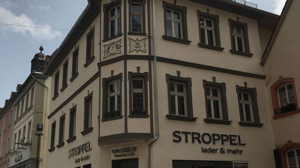 Fast 1000 m² Mietf. KF X=14,4 Ein denkmalgeschütztes Gebäudeensemble mit bis zu 700 Jahren St. Wendeler Stadtgeschichte in dem Umfeld der Basilika gelegen. Ein Art - Deco Wohn- und Geschäftshaus, samt Nebengebäuden mit einer vermietbaren Gesamtfläche von ca.938 m². Die originellen Räumlichkeiten im UG (Sandsteingewölbe Balduinkeller 150 m²) von 1327, aus der Stilepoche der Spätgotik mit zahlreichen Gegenstände die an das Mittelalter und die Zeit der Ritter erinnert, präsentieren sich in dicken Sandsteinmauern mit einem unverwechselbaren Ambiente des Mittelalters. Das original erhaltene liebevoll bis ins kleinste Detail renovierte barocke Stadthaus (ca. 130 m²) aus dem Jahre 1747, bis zur Jugendstil- Altstadtvilla die als Wohn- und Geschäftshaus eines der letzten Traditionsgeschäfte (LEDER STROPPEL ca. 260 m²) beheimatet, das auf über 150 Jahre Geschäftstätigkeit vor Ort zurückblicken kann. In dem 1. OG befindet sich noch eine sehr schöne Kunst- Galerie (Galerie 32 ca. 151 m²) einer regionalen jungen Künstlerin deren 10 Fenster in der vorderen Fassade einen einzigartigen Blick auf das St. Wendeler Wahrzeichen (Basilika) erlauben. Im 2.OG befindet sich eine große Wohnung mit ca. 144 m².