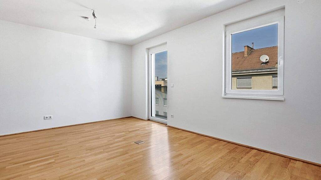 Die Wohnung verfügt über einen funktionalen Vorraum, der in das Badezimmer mit Badewanne, WC und Waschmaschinenanschluss führt. Die rund 21 m² große Wohnküche ist effizient geschnitten und ermöglicht eine flexible Nutzung des Wohnraums.