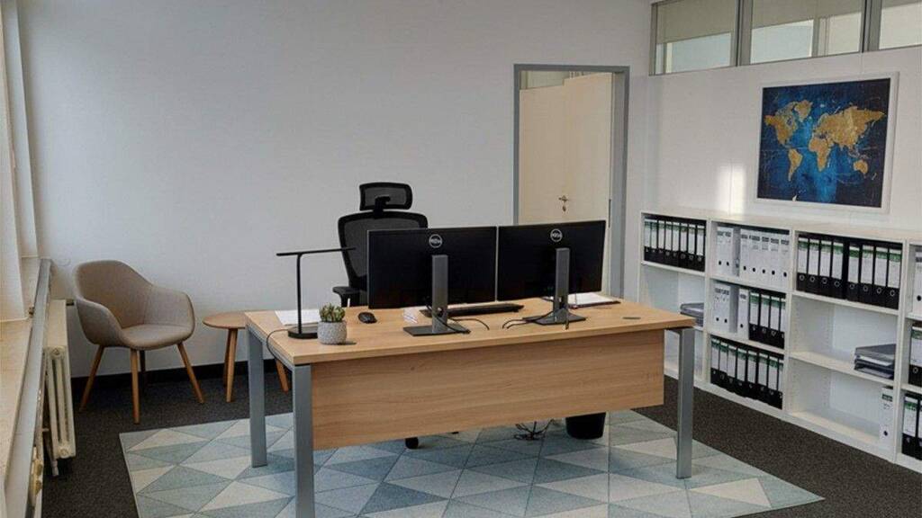 . Gesamtfläche: 79,87 m² im 1. OG (HNF: 52,11 m², NNF/ TF: 27,76 m²) . Zustand: Saniert, Renoviert. . Ausstattung: Zentralheizung, Teppichboden/Nadelfilz, Teeküche, Sonnenschutz . Komfort: Empfang, Virtual Office, 24/7 Zugang, getrennte Damen- und Herren-WCs . Parken: Stellplätze zur Miete verfügbar . Preis auf Anfrage . Verfügbarkeit: Ab sofort
