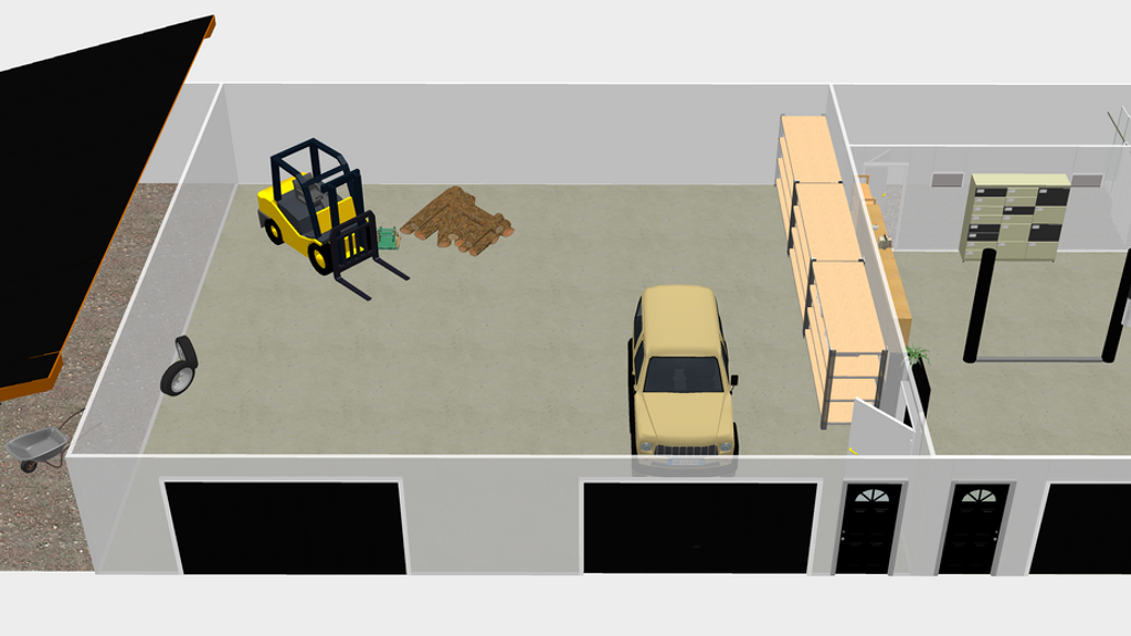 Die Lagerhalle mit isoliertem Dach beinhaltet eine große Werkstatt mit Fußbodenheizung, drei elektrische Tore und eine 30 kWp Anlage mit Batteriespeicher. Mit Brunnen und Technik ist man so fast autark aufgestellt.