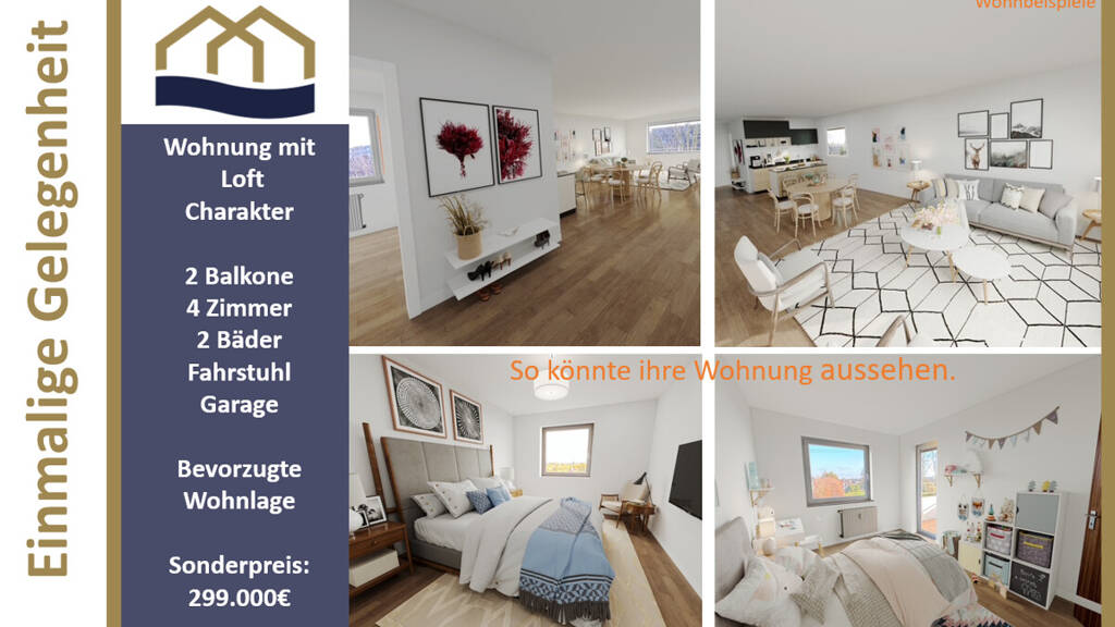 ***Die Einrichtungsbilder sind in die Räume animiert und zeigen zukünftige Möglichkeiten der Einrichtung in diesen Räumlichkeiten***
