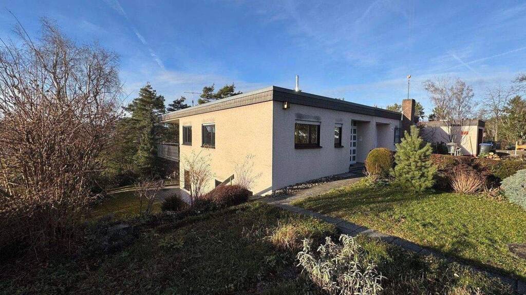 Das 1971 in Massivbauweise errichtete Haus steht auf einem rechteckigen, nach Westen abfallenden Grundstück und profitiert von einer leicht terrassierten Gartenlage mit hohem Gestaltungspotenzial. An der südöstlichen Straßenseite sorgen eine Einzelgarage und ein zusätzlicher Stellplatz für komfortables und praktisches Parken direkt am Haus. Das Gebäude verfügt über ein ausgebautes Erdgeschoss, ein wohnlich voll nutzbares erstes Untergeschoss sowie ein zweites, teilunterkellertes Untergeschoss, welches die Heizung, den Hobby- und Kellerraum enthält.