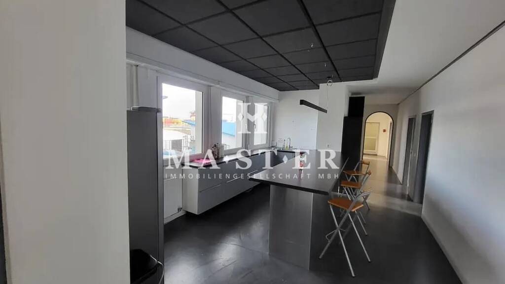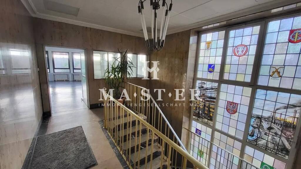 Die Büroräume liegen im 1.OG und sind vom Franziusplatz aus zugänglich. Derzeit ist die Aufteilung in 6 Büroräume, eine große Kaffeeküche mit Theke, zwei Damen und eine Herren Toilette. Weiterhin ein großer Empfangsbereich mit Skylineblick, sowie einige Abstellräume. Die Aufteilung der Räume kann und darf auch verändert werden. Die Gesamtfläche beträgt etwa 210 qm.