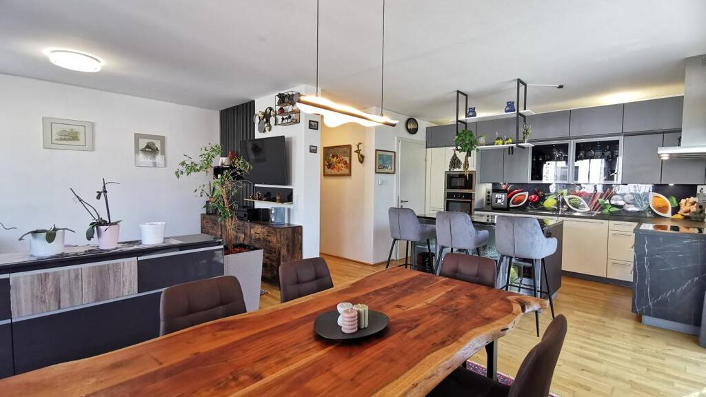 Die moderne, geräumige Küche lädt förmlich dazu ein, ein köstliches Mahl zuzubereiten und verfügt zusätzlich über eine separate Speis, welche für extra Stauraum sorgt.