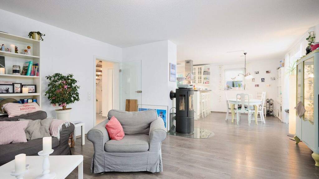 Der durchdachte Grundriss und die hochwertige Ausstattung dieses Hauses lassen keine Wünsche offen. Die offene Küche ist geschmackvoll gestaltet und verfügt über eine moderne Einbauküche. Die Küche geht in den großzügigen Wohn- und Essbereich über, der das Herzstück des traumhaften Hauses bildet. Vom Wohn- und Essbereich hat man einen direkten Zugang auf die südlich ausgerichteten Terrasse mit Blick in den gepflegten Garten. Hier lassen sich wunderbar entspannte Stunden in der Sonne genießen. Für die Abendsonne gibt es eine zweite Terrasse mit nordwestlicher Ausrichtung.