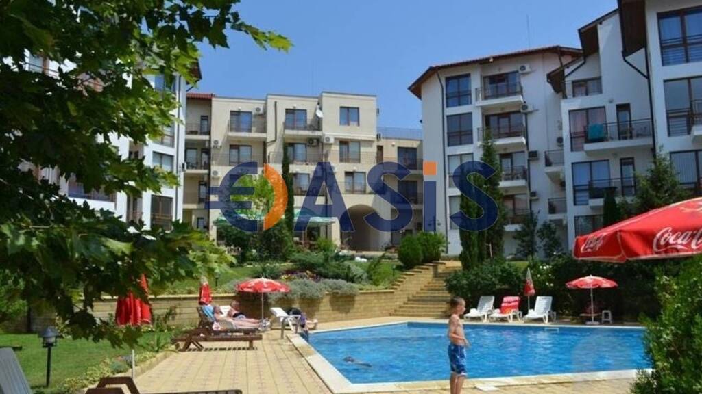 Die Wohnung besteht aus einem Flur, einem geräumigen Küchenbereich mit Sitzecke; 2 Schlafzimmer, mit Zugang zu Terrassen , zwei Badezimmer. Die Apartments sind klimatisiert . Möbel und Geräte bleiben in der Wohnung. Der Komplex verfügt über einen Außenpool, bis zum Meer 350 Meter. Das Zentrum von St. Wlass ist 1000 Meter entfernt.