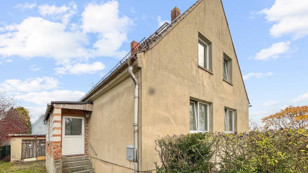 Bei der angebotenen Immobilie handelt es sich um ein Einfamilienhaus des in der DDR weit verbreiteten Eigenheim-Typs EW 65 B, einer der gängigsten Bauformen dieser Zeit. Das Haus überzeugt durch seine solide Bauweise und eine funktionale Grundrissgestaltung. Das Gebäude verfügt über ein ausgebautes Dachgeschoss, ist voll unterkellert und bietet eine Wohnfläche von ca. 116 m². Insgesamt stehen derzeitig 6 Zimmer, Küche und Tageslicht-Bad zur Verfügung, die vielfältige Nutzungsmöglichkeiten für Familie, Arbeiten oder Hobby bieten. Ca. im Jahr 1992 wurde im Eingangsbereich ein vorderer Anbau errichtet, der den Zugang zum Haus erweitert und zusätzlichen Raum schafft und eine Terrasse realisiert. Die Immobilie befindet sich in einem sanierungsbedürftigen Zustand und ist umfassend an moderne Wohn- und Energiestandards anzupassen. Damit bietet sich eine gute Gelegenheit für Käufer, die ein Haus nach eigenen Vorstellungen modernisieren und gestalten möchten. Das großzügige Grundstück mit ca. 628 m² ist übersichtlich und pflegeleicht angelegt und bietet ausreichend Platz für Garten, Freizeit und Erholung. Ergänzt wird das Angebot durch eine größere Garage auf dem Grundstück, die zusätzlichen Stauraum sowie eine sichere Unterbringung für Fahrzeuge ermöglicht. Der Energieausweis wurde beauftragt. Diese Liegenschaft ist perfekt für Käufer, die ihre eigenen Vorstellungen und Ideen in die Renovierung und mögliche Sanierung einbringen möchten. Die solide Grundstruktur des Hauses bietet eine hervorragende Basis für ein gemütliches und modernes Zuhause. Nutzen Sie die Gelegenheit, dieses charmante Haus nach Ihren Vorstellungen zu gestalten und vereinbaren Sie noch heute einen Besichtigungstermin. Lassen Sie sich von den vielfältigen Möglichkeiten dieser Immobilie inspirieren und entdecken Sie Ihr neues Zuhause!