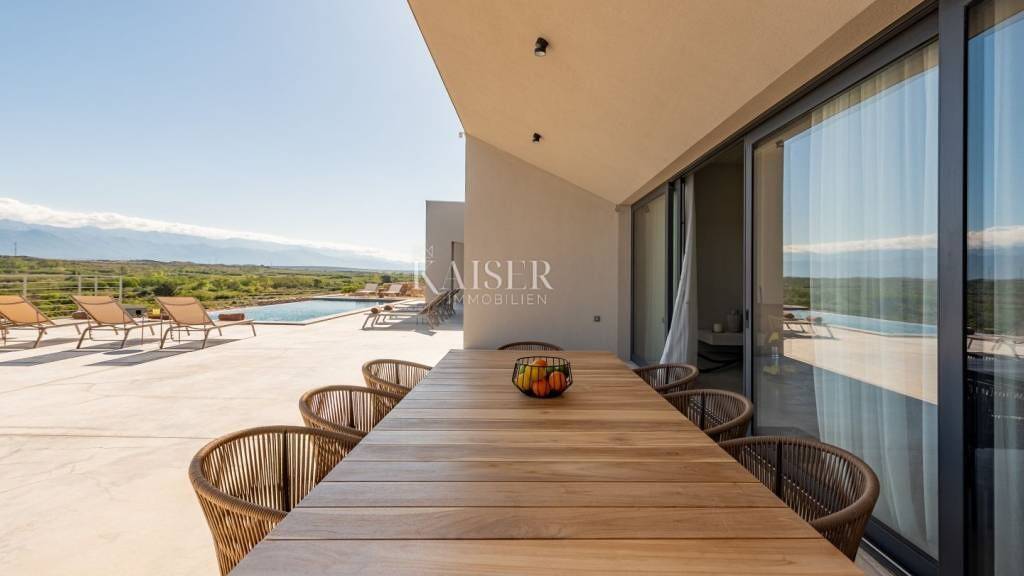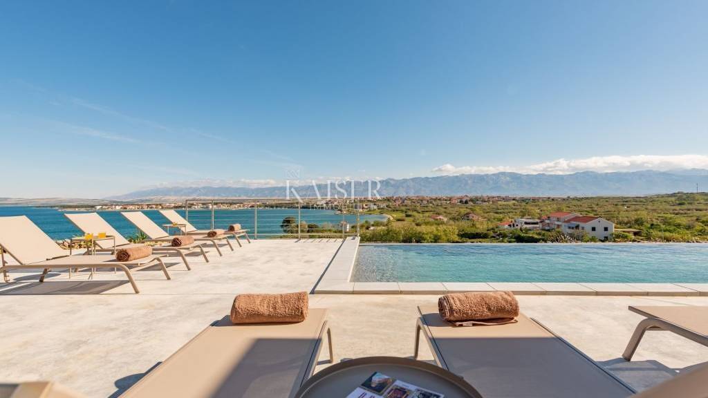 Kaiser Immobilien präsentiert eine wunderschöne Erdgeschossvilla mit einem geräumigen Wohnzimmer mit Kamin, vier 25 m2 großen Schlafzimmern, einem 40 m2 großen Wohn-/Unterhaltungsraum und einer großen Terrasse mit einem 40 m2 großen beheizten Infinity-Pool mit Blick auf die Bucht und die Berge. Die Villa entsteht auf einem Grundstück von 1490 m2 mit überdachtem Parkplatz, einem Ladegerät für ein Elektroauto und einem mit mediterranen Pflanzen bepflanzten Garten. Die Villa ist mit einer voll ausgestatteten Küche, Badezimmern mit ebenerdiger Dusche sowie Fußbodenheizung und Klimaanlage in allen Zimmern ausgestattet. Es verfügt über eine Lounge im Freien und eine Terrasse mit Grill. Außerdem verfügt es über eine Photovoltaikanlage, die das Anwesen mit zusätzlicher Energie versorgt. Die Insel Pag ist mit über 2.500 Sonnenstunden pro Jahr eine der sonnigsten Inseln der Adria. Unter den mehr als tausend adriatischen Inseln unterscheidet sich Pag völlig von den anderen; Unter der Steinrüstung verbirgt sich der Reichtum, der im Laufe der Jahrhunderte von den Händen fleißiger Inselbewohner geschaffen wurde, die immer hart arbeiten mussten, um etwas zu schaffen. Deshalb lohnt es sich, die Stadt zu besuchen, ihre vielen Gesichter zu entdecken und sie zu genießen. Für weitere Informationen kontaktieren Sie uns vertrauensvoll unter der Telefonnummer +385 914100031 oder unter der E-Mail-Adresse: romana@kaiser-immobilien.hr.