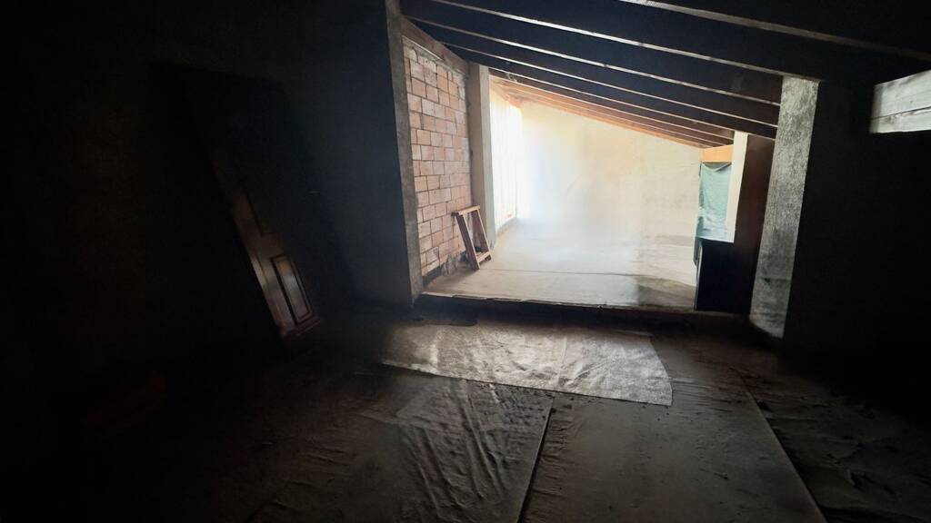 Das darüber liegende, zugehörige Dachgeschoss mit ca. 66 m² bietet hervorragendes Ausbaupotential – beispielsweise zur Erweiterung der Wohnfläche oder als Sommerküche. Eine Verbindung zum Apartment im zweiten Obergeschoss kann durch den Einbau einer Treppe problemlos hergestellt werden. Vom Dachgeschoss gelangt man direkt auf die ca. 55 m² große Dachterrasse, die zum Verweilen im Freien einlädt und einen reizvollen Ausblick auf den Ort und die umliegende Natur bietet. Derzeit sind Dachgeschoss und Terrasse über das gemeinschaftliche Treppenhaus zugänglich.