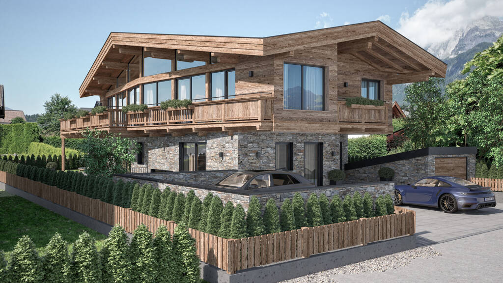 Fünf Schlafzimmer mit Bädern ensuite erfreuen Sie, Ihre Familie und Ihre Gäste. Eine Weinlounge und ein toller Welnessbereich wurden ebenfalls geschickt in das wohldurchdachte Wohnkonzept integriert. Die urige Bauernstube offenbart einen vollen und wunderschönen Blick auf den Wilden Kaiser. Das Ortszentrum von St. Johann ist fußläufig bequem in wenigen Minuten erreichbar.