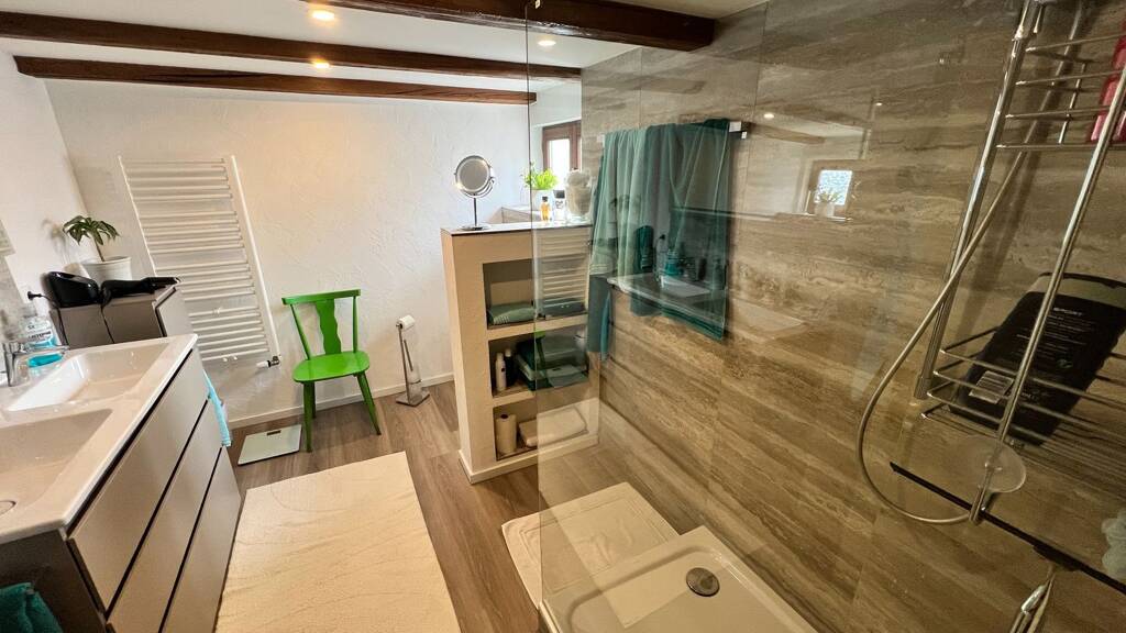 Im Dachgeschoss des Anwesens ist eine großzügige Betriebswohnung untergebracht; hier wurde kürzlich das Badezimmer komplett modernisiert.