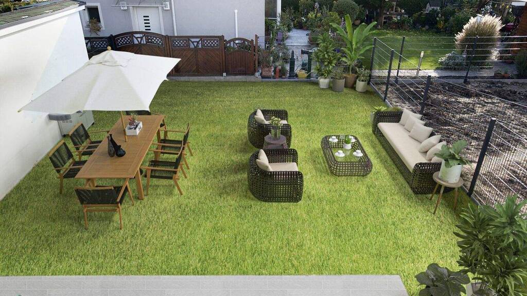 Erdgeschoß: Vorzimmer, Wohnküche mit Ausgang auf die südseitige Terrasse und in den Garten, Gäste-WC
