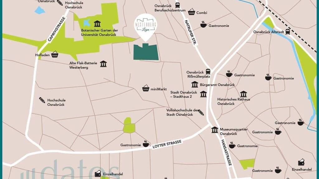 Die Lage am Westerberg verbindet die Nähe zur Innenstadt mit ruhigem Wohnen. Einkaufsmöglichkeiten, Gastronomie, Freizeitangebote und die Universität Osnabrück sind schnell erreichbar. Zudem sorgt eine gute Verkehrsanbindung für Flexibilität im Alltag.