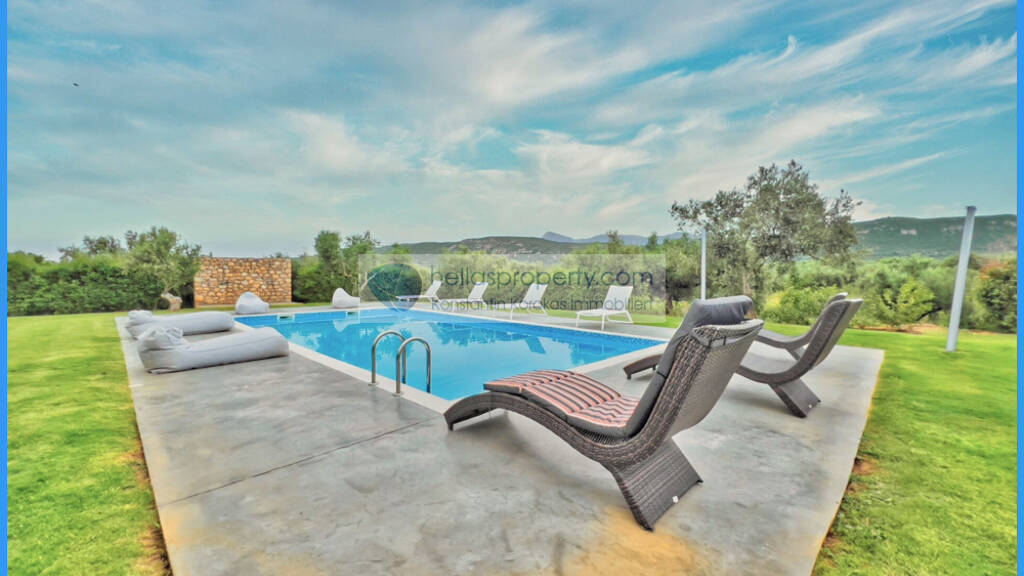 Attraktive Villa mit Pool, 1 km v. Meer auf 4.800 m² sorgfältig angelegtes Grundstück in Filiatra.