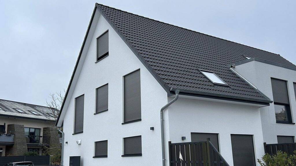 Bemerkungen: Die Immobilie präsentiert sich in moderner, klarer Architektur mit weißer Putzfassade und anthrazitfarbenem Satteldach. Elektrische Rollläden an allen Fenstern sorgen nicht nur für Sicht- und Sonnenschutz, sondern unterstreichen auch den zeitgemäßen Charakter des Hauses.