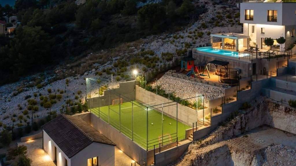 Die gesamte Bruttobaufläche des Haupthauses und der Nebengebäude beträgt 360,75 m, ohne zusätzliche Einrichtungen. Zu den weiteren Annehmlichkeiten gehören eine gepflasterte Terrasse rund um den Pool mit einer Fläche von 140 m, ein 130 m großer Spielplatz mit Geräten, ein 162 m großer, vollständig eingezäunter Fußball-/Volleyballplatz mit Kunstrasen und sechs angelegte Parkplätze vor dem Grundstück.