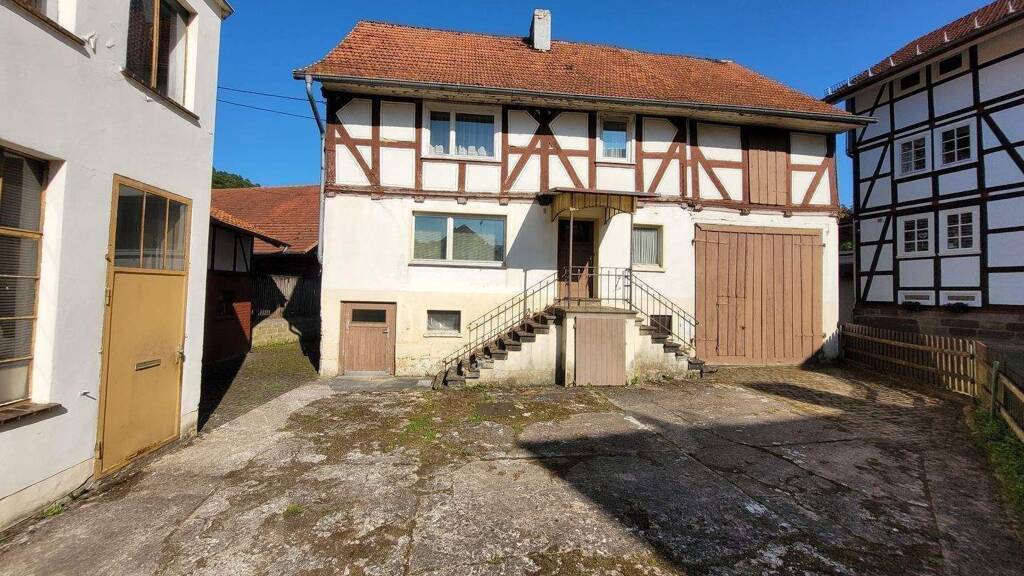 FĂśR HANDWERKER!!! SanierungsbedĂĽrftiges Fachwerkhaus mit Werkstatt und Garagen in Neuenstein-Aua