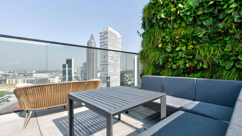 Hoch hinaus wohnen - mitten in Frankfurt! Diese bezugsfreie 2-Zimmer-Wohnung im Eden Tower vereint zeitloses Design mit erstklassigem Komfort auf 52,10 m² Wohnfläche. Genießen Sie den Ausblick durch raumhohe Panoramafenster oder entspannen Sie auf dem eigenen Balkon. Echtholz-Parkett, Fußbodenheizung und exklusive Ausstattungslinien sorgen für ein stilvolles Ambiente. Ein Hauswirtschaftsraum bietet praktischen Stauraum. Highlight: Die Servicewelt eines Premium-Wohnkonzepts mit Concierge, hauseigenem Gym, begrüntem Hochhausdesign und einer Gemeinschaftsdachterrasse mit Weitblick. Urbanes Wohnen, wie es nur der Eden Tower bietet - provisionsfrei!