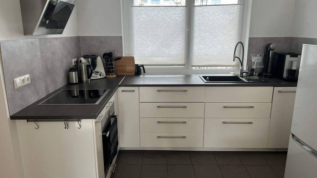 Eine Einbauküche ist nicht vorhanden, sodass Sie Ihre eigene mitbringen können.
