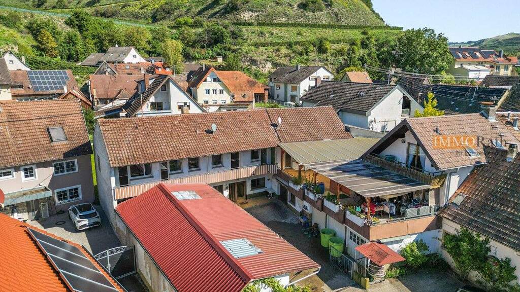 - Einfamilienhaus zum Kauf in Vogtsburg im Kaiserstuhl / Oberrotweil mit zwei Gästezimmern - Baujahr 1962, gepflegter Zustand - Großzügige Grundstücksgröße von ca. 550 m² - Wohnfläche von ca. 178 m² verteilt auf 4 Zimmer und zwei Gästezimmer - Nutzfläche von ca. 211 m ² - Ruhige Lage in einer idyllischen Seitenstraße - Gemütlicher Balkon für entspannte Momente im Freien - Einladender, gepflasterter Innenhof - Garagen und weitere Nutzfläche - Glasfaseranschluss
