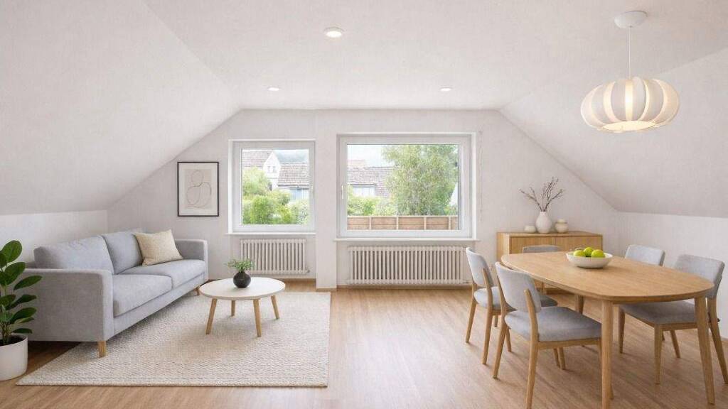 Diese helle und gepflegte 3-Zimmer-Wohnung im Dachgeschoss eines ruhigen 3-Parteienhauses überzeugt mit ca. 69?m² Wohnfläche, einem durchdachten Grundriss und liebevollen Details. Sie ist frisch geräumt und kann sofort bezogen werden.