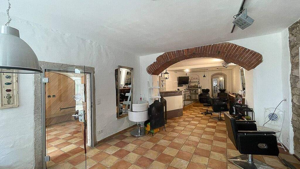Die Einheit wurde aktuell als Friseurladen genutzt und ist mit hochwertigen Friseurstühlen, modernen Waschbecken und einem ansprechenden Empfangsbereich ausgestattet. Die stilvolle Inneneinrichtung kombiniert zeitgenössisches Design mit gemütlichen Elementen, die eine einladende Umgebung schaffen. Große Fenster sorgen für viel Tageslicht und eine angenehme Atmosphäre. Bei Bedarf können einzelne Möbelstücke vom aktuellen Mieter übernommen werden. Über einen kleinen Hausflur erreichen Sie den Salon gleich rechter Hand im Erdgeschoss. Durch den großen Verkaufsraum gelangen Sie hinunter in das Untergeschoss, wo eine separate Küche, ein zusätzlicher Lagerraum und der Sanitärbereich mit Toilette untergebracht sind.