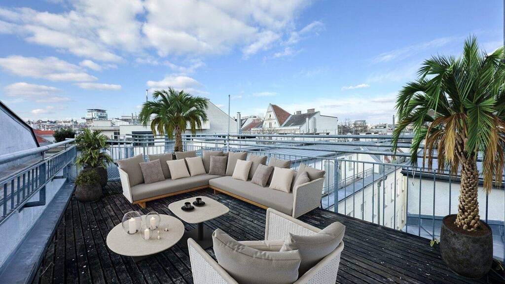 Die Wohnung ist zur Schönbrunner Straße hin in südöstlicher Richtung ausgerichtet, während die großzügige Terrasse in den ruhigen Innenhof nach Nordwesten zeigt.