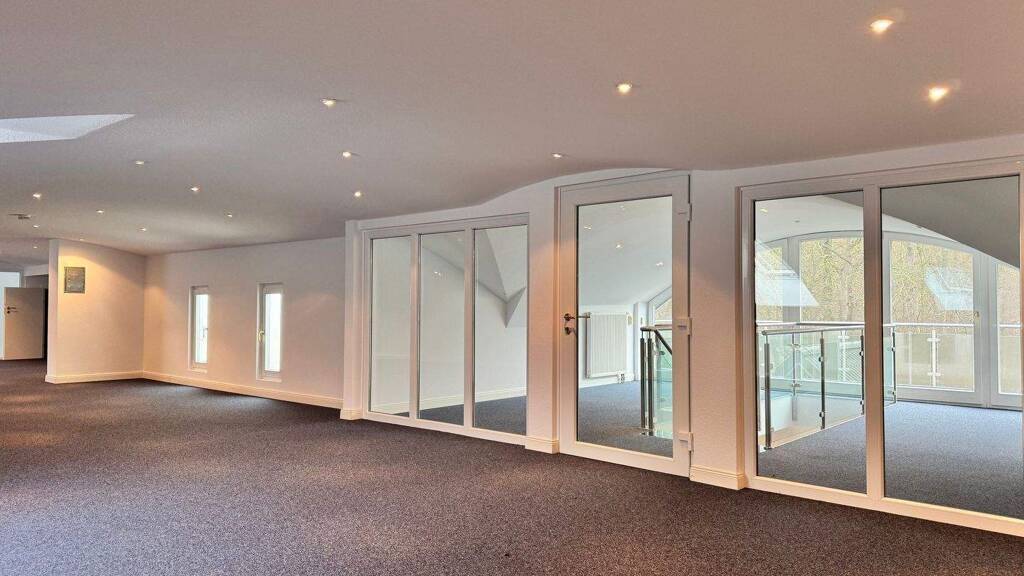 Im Obergeschoss befinden sich mehrere Schlafzimmer mit Loggiazugang sowie ein Masterbereich mit Ankleide und Bad en Suite. Das Dachgeschoss bietet zusätzliche, flexibel nutzbare Flächen, z. B. als Arbeits-, Freizeit- oder Hobbybereich, teilweise mit separatem Zugang.