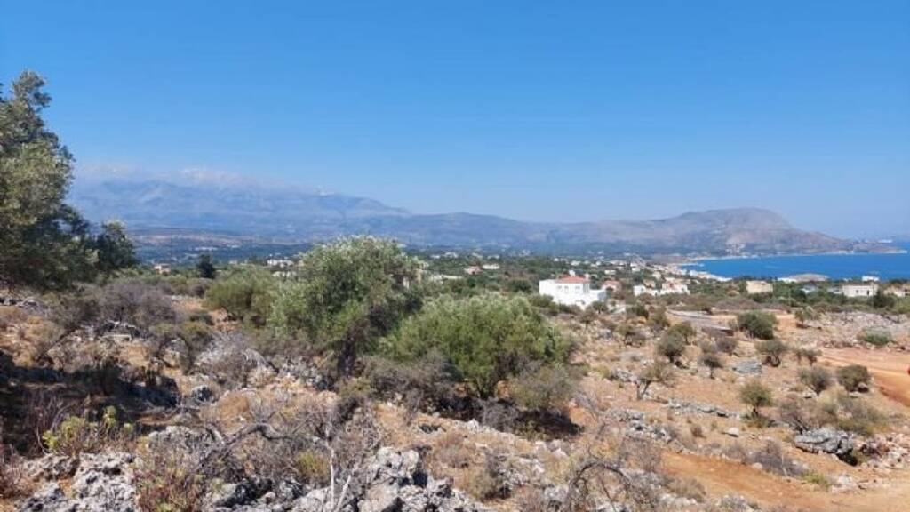 Am Stadtrand von Kokkino Chorio gelegen, befindet sich dieses einzigartige Grundstück in sehr ruhiger Lage mit wunderschönem Blick auf die Bucht von Souda, Chania und das offene Meer. Zu Ihrer Linken sind die weißen Berge zu sehen.