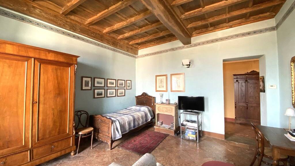 Über die Treppe gelangt man in den langen Korridor, von dem aus man Zugang zu den 4 Schlafzimmern hat, von denen eines eine Kassettendecke hat, zu den 2 Bädern, von denen eines ein türkisches Bad und eine gewölbte Decke hat, und zum großen Arbeitszimmer mit einem Balkon mit Panoramablick. Das Haus ist mit zahlreichen Details aus der Zeit geschmückt, wie z.B. den lombardischen Terrakottafliesen, die in den meisten Zimmern vorhanden sind.