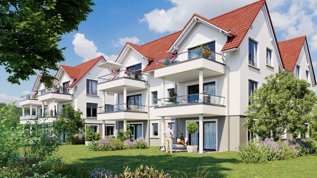 Die Häuser mit jeweils nur 6 individuellen Wohnungen befinden sich in einer sehr ruhigen Gartenlandschaft auf dem Gelände eines ehemaligen Autohauses, angrenzend an Weinreben und ganz in der Nähe der historischen Altstadt von Freinsheim.