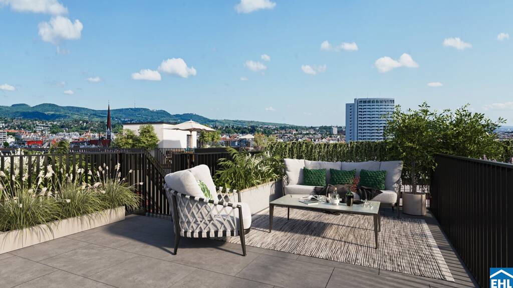 Private Freiflächen wie Eigengärten, Balkone, Loggien, Terrassen sowie großzügige Dachterrassen mit Panoramablick erhöhen die Vermietbarkeit und sprechen qualitätsbewusste Mieter an.
