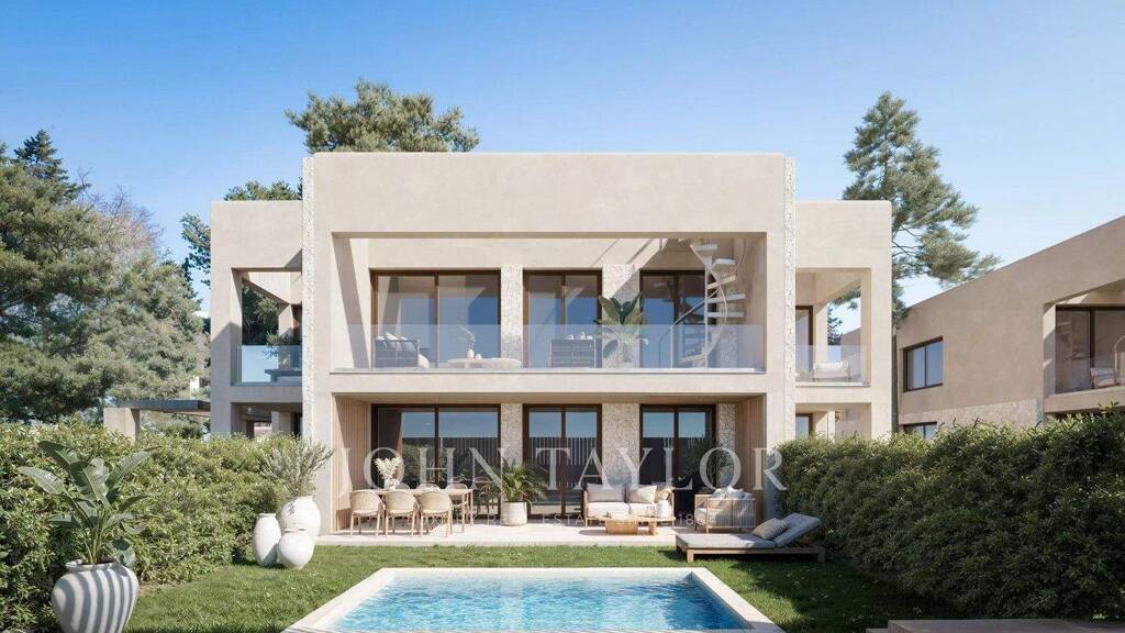 Jede Wohnung verfügt über 63 m² Wohnfläche, aufgeteilt in zwei Schlafzimmer und zwei Badezimmer, wobei das Hauptschlafzimmer über ein Bad en suite verfügt. Die Innenräume öffnen sich harmonisch zu privaten Außenbereichen und bieten in jeder Einheit einen privaten Pool mit Salzwasser-Chlorierung, der sich elegant in das Gesamtkonzept einfügt.