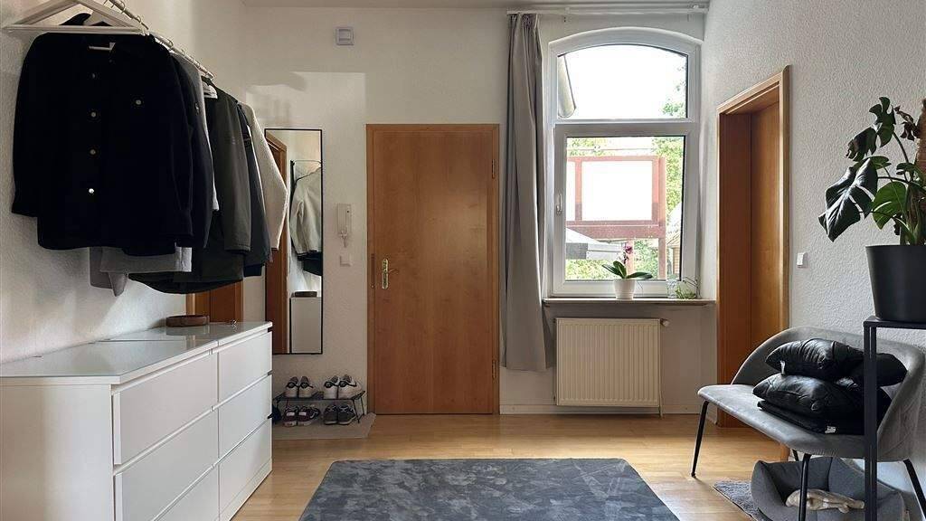 Zum Kauf steht ein Mehrfamilienhaus mit vier Wohneinheiten und ein Nebengebäude (Fachwerkhaus) mit einer Wohneinheit. Erbaut wurde das linke Haus um 1900, das rechte Haus ca. 1938 und das Fachwerkhaus ca. 1937. Das Eigentumsgrundstück hat eine Größe von ca. 974 m². Die Wohn- und Nutzfläche der Häuser beträgt insgesamt ca. 435 m².