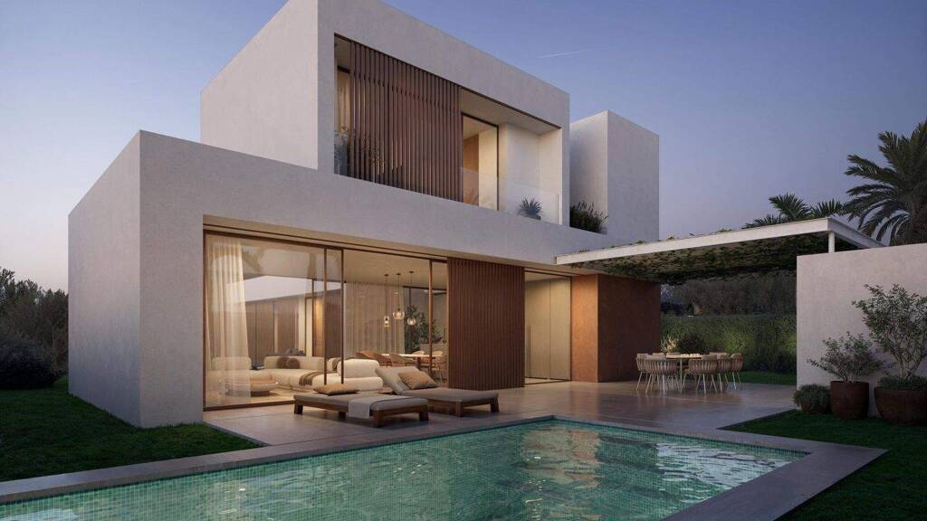 Die Hauptterrasse, der Garten und der Pool befinden sich an der Südfassade und genießen das ganze Jahr über optimales Sonnenlicht sowie eine direkte Verbindung zwischen Innen- und Außenbereich. Die Tagesräume öffnen sich durch große Fenster zu diesem sonnigen Bereich, was kontinuierliches natürliches Licht, thermischen Komfort und eine fließende Verbindung zur Außenwelt garantiert.