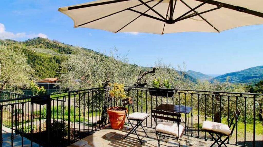 Dieses derzeit als B&B genutzte Anwesen liegt nach Süden ausgerichtet und mit einem schönen Blick über das Tal und das am Horizont glitzernde Meer in den Hügeln von Dolceacqua. Der charmante mittelalterliche Ort mit Einkaufsmöglichkeiten und Restaurants ist über eine gut ausgebaute Bergstraße in nur 10 Autominuten erreichbar. Nur 20 Autominuten sind es an die Küste nach Bordighera/Ventimiglia, 40 Minuten nach Sanremo, und ca. 50 Minuten an die Côte d’Azur mit Monaco und dem internationalen Flughafen Nizza.