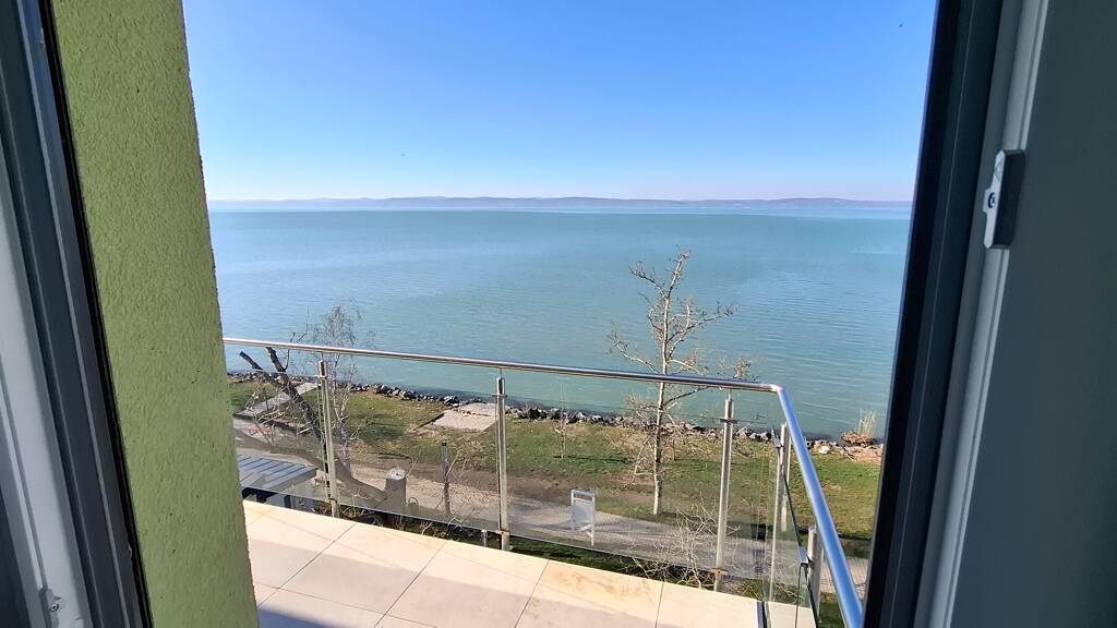 Die moderne Wohnanlage mit 71 Wohneinheiten ist senkrecht zum Balaton ausgerichtet – so ist von jedem Balkon ein dauerhafter Panoramablick auf den See garantiert.