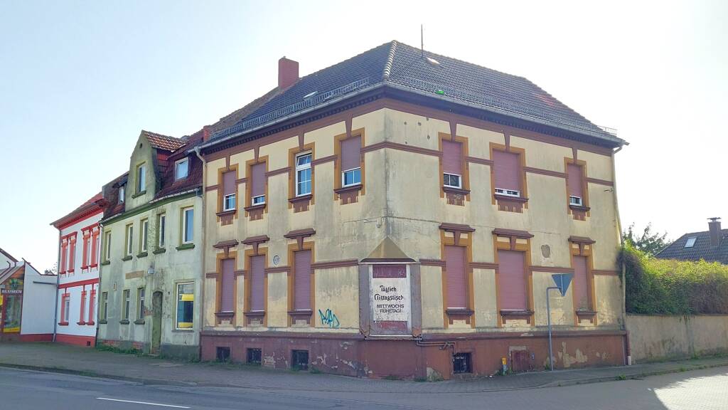 Optisch unterteilt sich das Objekt in zwei Wohnhäuser. Die damalige Nutzung war sechs Mieteinheiten sowie ein Gastronomiegewerbe.