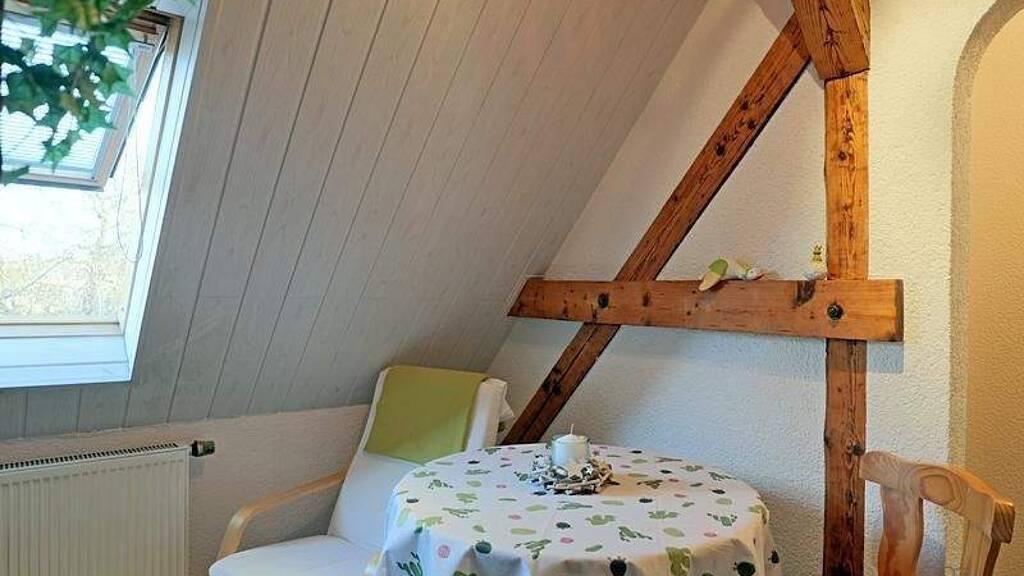 ### Please note the availability date! Bitte das Verfügbarkeitsdatum beachten! ### möbliertes Zimmer im Dachgeschoss eines Zweifamilienhauses in schöner ruhiger Wohnlage; zentrumsnahes Haus mit Garten; Einzelbett, runder Tisch mit Stuhl und Sessel, TV, Wand-Kleiderschrank; Küchenecke mit Kühlschrank, Toaster, Kaffeemaschine, Mikrowelle; eigenes Bad mit Dusche und WC; der Garten kann mitgenutzt werden; PKW-Stellplatz vorhanden; keine Waschmaschine vorhanden, Vermietung ausschließlich an 1 Person und Wochenendheimfahrer; vermieterseits ist kein Internet verfügbar; Pauschalmiete 415,00 Euro; Kaution 500,00 Euro; Endreinigung Mietersache; Mindestmietdauer 3 Monate; Pflichtangaben zum Energieausweis: Energieausweis gültig bis: 26.03.2028; Baujahr Gebäude: 1923; Energieausweis: nach Verbrauch; Energieverbrauch: 129.5 kWh/(m²a); Energieeffizienzklasse: D; Primärer Energieträger: Erdgas H