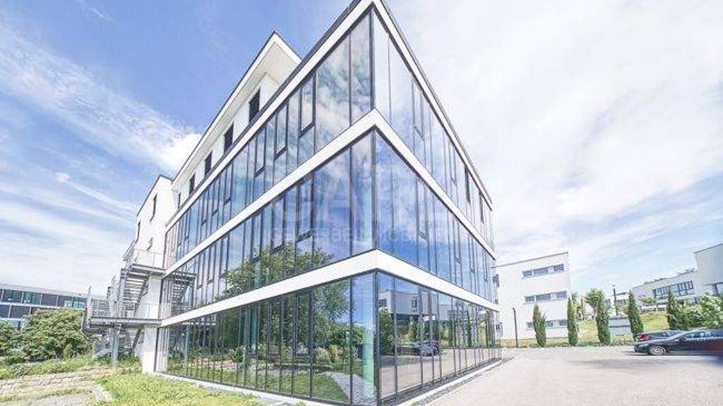 Der Blick ins Grüne und der Bezug zur Natur verleihen der Arbeitsatmosphäre eine gewisse Besonderheit. Durch die vollflächige Glasfassade sind die Flächen sehr hell und lichtdurchflutet. Die Präsenz und die Ausstrahlung des Gebäudes sind außergewöhnlich und führen zu einer auffälligen Wahrnehmung und einer guten Sichtbarkeit.