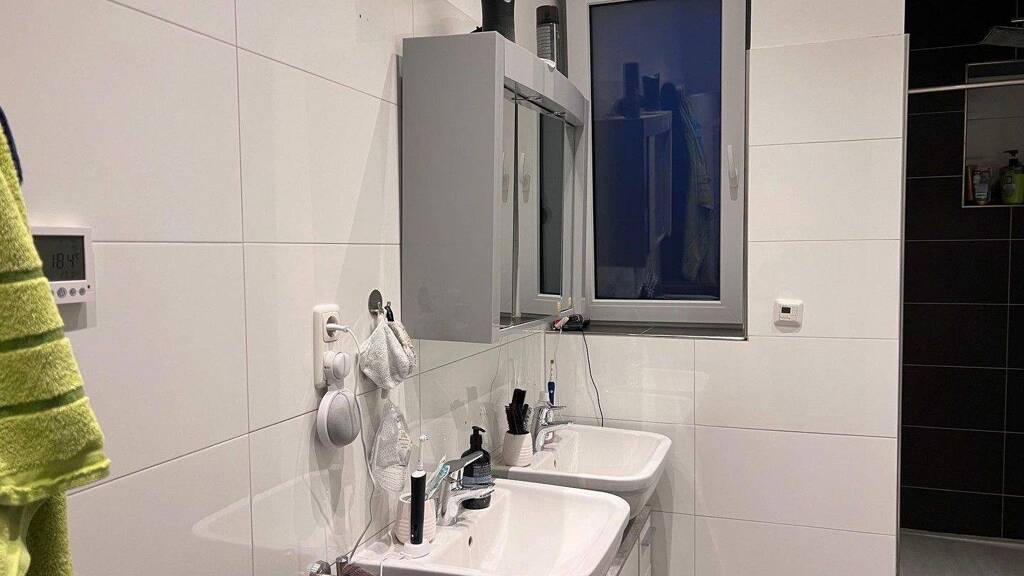Bemerkungen: Ausstattung: Heizung: Zentralgasheizung im Keller und Fußbodenheizungen in allen Zimmern Böden: Hauptsächlich hochwertige Fliesen in den meisten Zimmern und Laminat in den Schlafräumen. Elektroinstallation: Videokameragegensprechanlage, LED Spots, SAT Anlage, Digitale Zeit-Schaltuhren und Thermostate Türen/Fenster: Dreifachverglasung und hochwertige Türen Bad: Doppelwaschbecken, Badewanne, hochwertige Armaturen. Anteiliger Keller: ca. 8 qm. Waschraum im Keller für Waschmaschinen, Trockner und Trockenraum. Vollgedämmte Fassade.