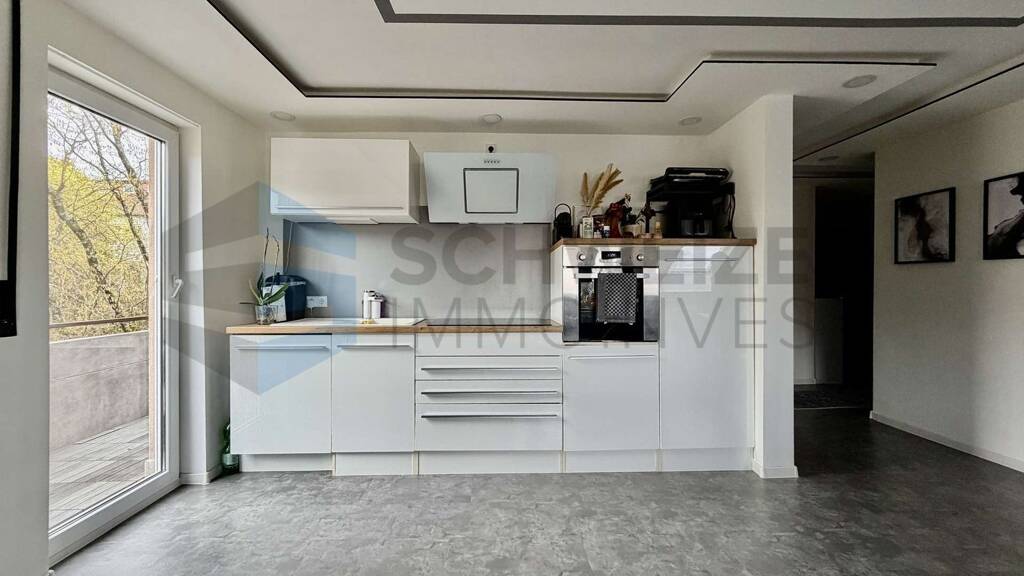 Im Jahr 2019 wurde die Wohnung grundlegend modernisiert und präsentiert sich heute in einem gepflegten und modernen Zustand. Der Wohnbereich ist hell und einladend gestaltet und bietet direkten Zugang zum Balkon. Auch das Schlafzimmer verfügt über einen Zugang zum Balkon, wodurch ein schöner, zusammenhängender Außenbereich entsteht, der zusätzlichen Wohnkomfort bietet.